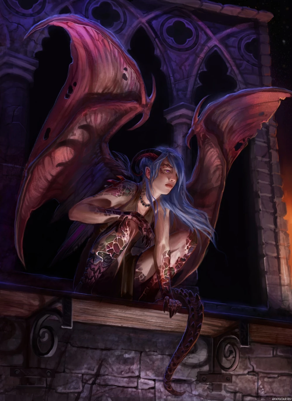 a fantasy scene featuring a gargoyle. This creature has the upper