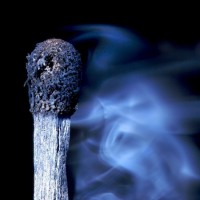 The image shows a lit match with smoke emanating from it. The smoke is dense and appears to be blue in color, which could suggest that the substance being burned is not typically associated with a flame, as one would expect from typical matches or candles. This unusual phenomenon might be due to specialized matches designed for certain substances or it could be an artistic or experimental setup to create such a visual effect.