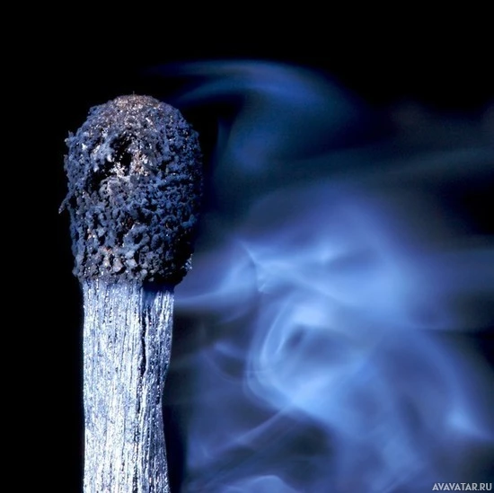 Картинка показывает зажженную спичку с дымом, исходящим от него. Дым плотный и, по-видимому, синего цвета, что может указывать на то, что сжигаемое вещество обычно не связано с пламенем, как можно было бы ожидать от типичных спичек или свечей. Это необычное явление может быть связано со специализированными спичками, предназначенными для определенных веществ, или это может быть художественная или экспериментальная установка для создания такого визуального эффекта.