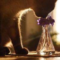 purple flowers. The setting appears to be indoors, possibly near a window or in a room with