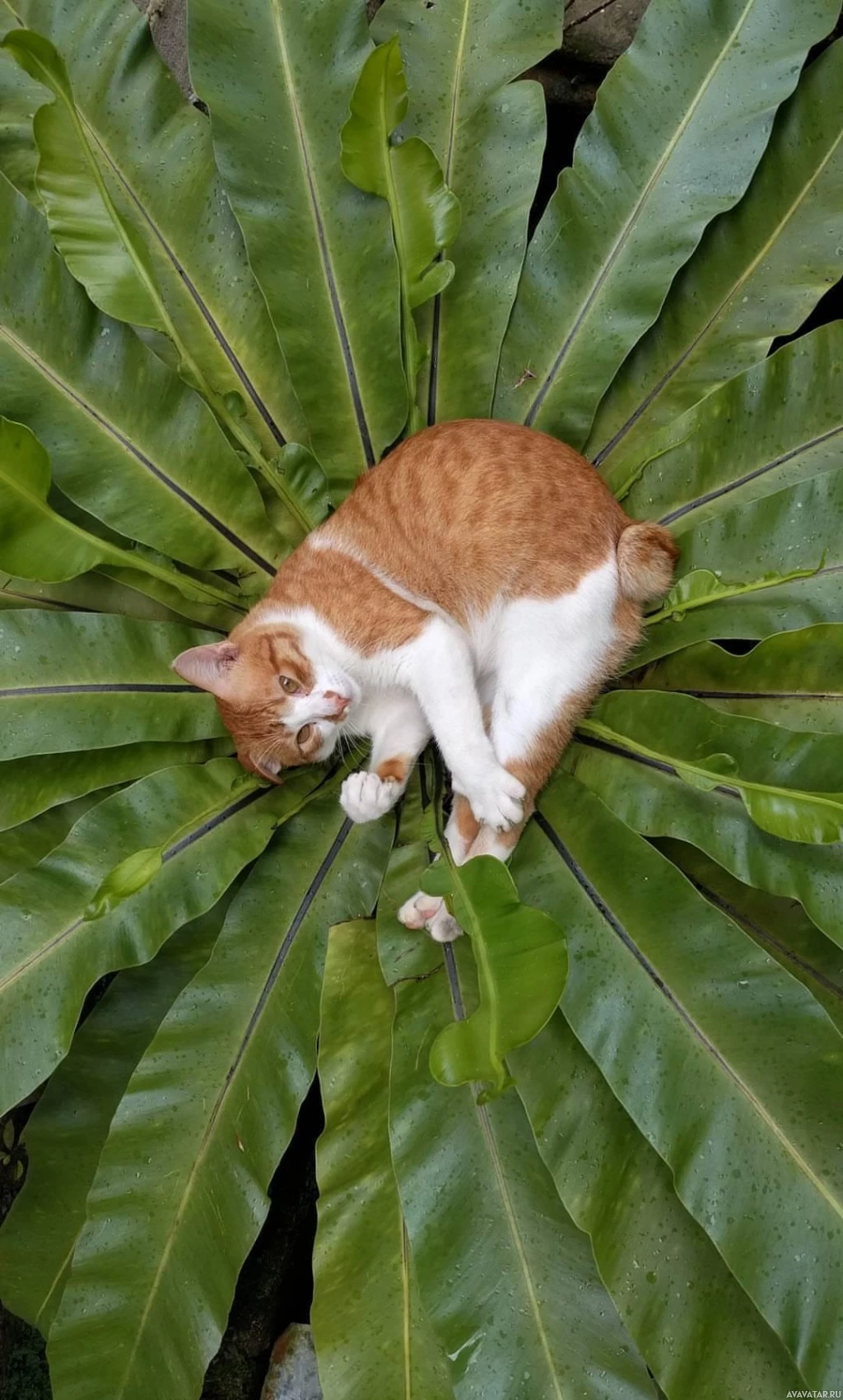 the green leaves of a plant forming a circular pattern around it. This is an example of