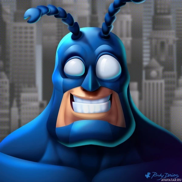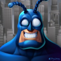 an urban environment typical of the setting in which "The Tick" usually operates, though no specific landmarks or city names are visible.