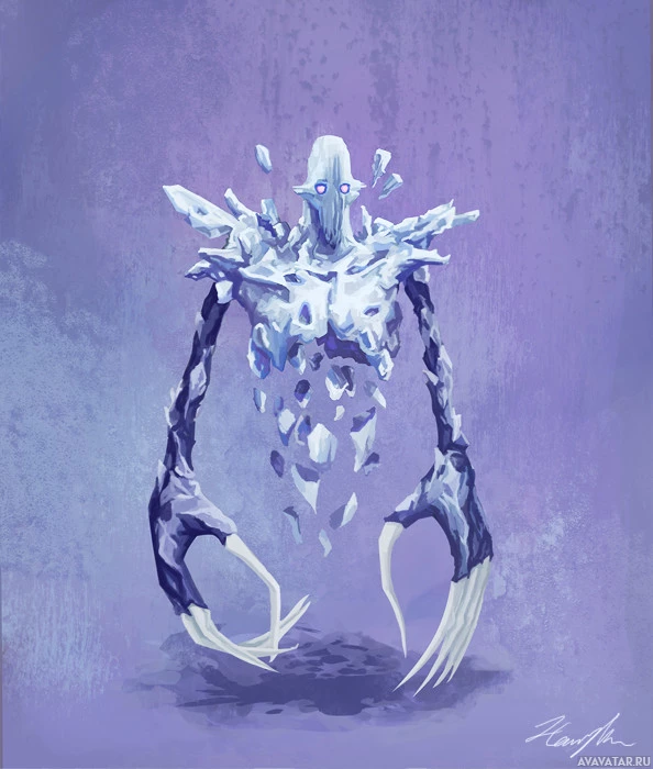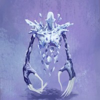 a humanoid form with arms and legs but also features that are not human, such as ice or crystal-like structures emanating from its chest and head. It appears to be a fantastical creation, possibly