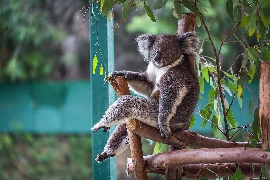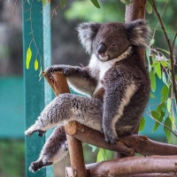 outdoor environment. The koala is looking towards