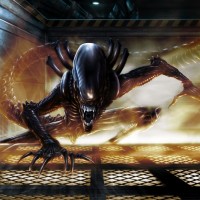 The image shows an alien creature, commonly known as the Predator, from the popular