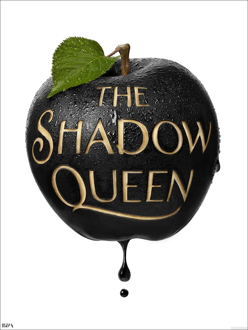 Shadow Queen." This is likely related to a product, brand, or title. The apple appears black and shiny, suggesting it might be made of a material like chocolate or some type of