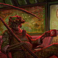 a control room, wearing military-style clothing and holding what appears to be a weapon. In the background, there are several screens displaying various