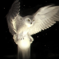night sky, which provides a serene and celestial backdrop for the owl. This image might be associated with themes of nature, wildlife, or fantasy artwork.