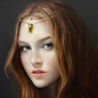 a young woman with red hair. She has