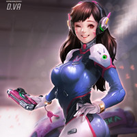 a character from the game "Overwatch." The character is D.Va, depicted in her hero form, which features a sleek and