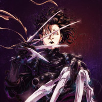 The image depicts an illustrated character holding a pair of knives, which is reminiscent of the villainous character known as "The Joker" from the Batman series. The character is shown in a stylized and exaggerated manner that is typical for comic book art or graphic novel illustrations. The background has a purple hue with swirling patterns, which adds to the dramatic effect of the image.