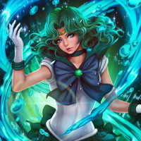 blue energy or water. The style of the artwork suggests it may be inspired by