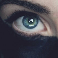 The image appears to be a close-up of a person's face, focusing on the eyes. The person has striking