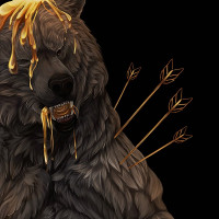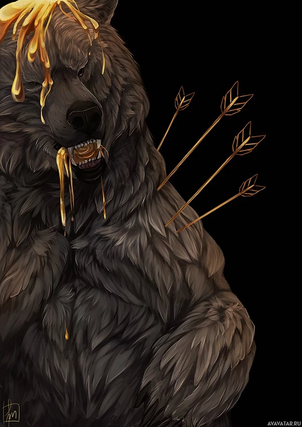 multiple arrows sticking out of the bear's body, which could imply that the bear has been attacked or injured. The overall impression is one of