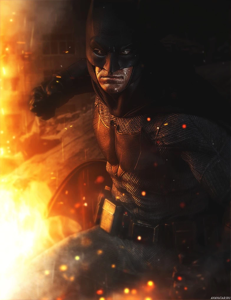 The image depicts a character who is recognizable as Batman. He is shown with
