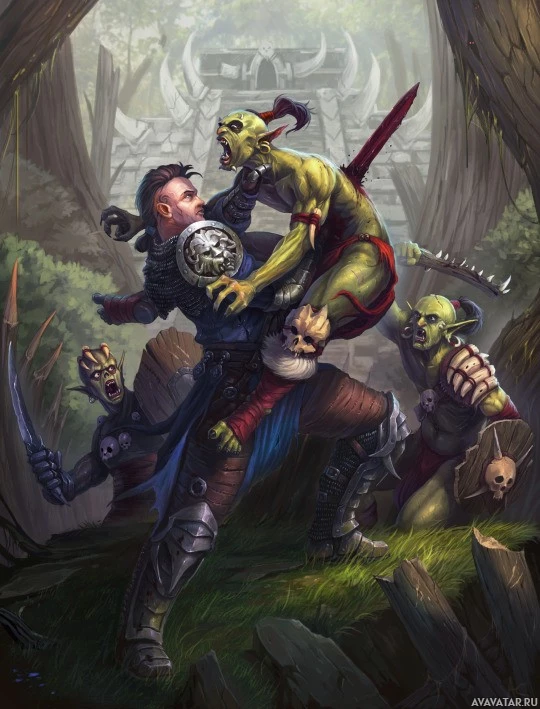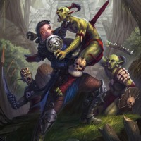 a humanoid figure that could be a goblin, as indicated by its appearance and context of fantasy storytelling. The other characters, one on either side, are also in