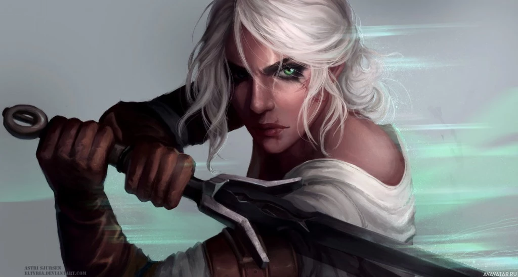 Wild Hunt". This character is known as Ciri in the game. She is depicted with