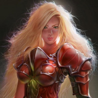 blonde hair and is wearing armor, suggesting she might be from a game or a story set in a medieval or fantasy context. She appears to be ready for battle or adventure, given her pose and attire.