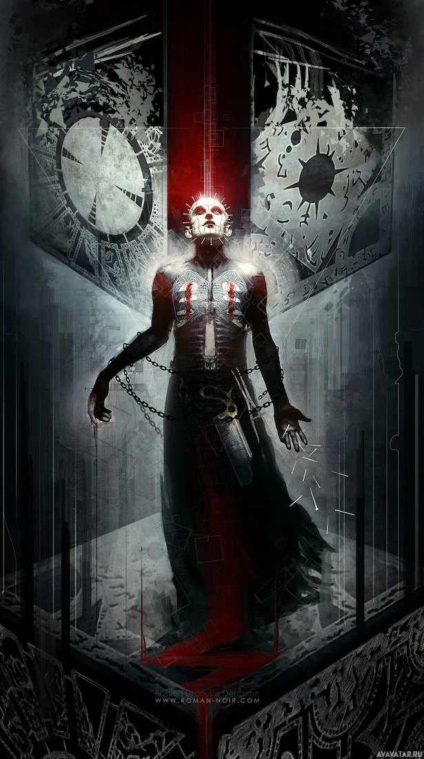gothic setting, possibly referencing a movie or game due to the dark and ominous atmosphere. The character is depicted with
