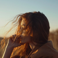 На снимке изображена молодая женщина с рыжими волосами, которая кажется потерянной в мыслях. Она сидит, и ее волосы слегка дуют, как будто это ветреный день. Ее выражение лица кажется созерцательным или, возможно, меланхолическим. В изображении нет других различимых объектов или людей, которые могли бы обеспечить дальнейший контекст.