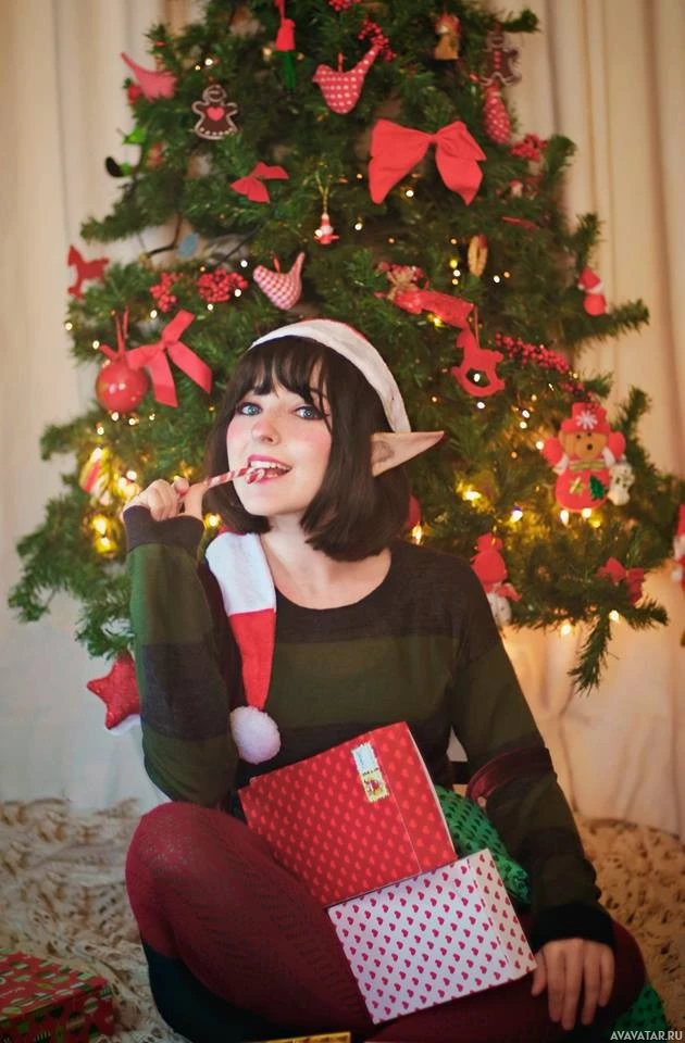 Christmas tree. The individual appears to be a woman with