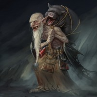 a fantasy character that appears to be from a horror or dark fantasy theme. The character is an old, grizzled man with long