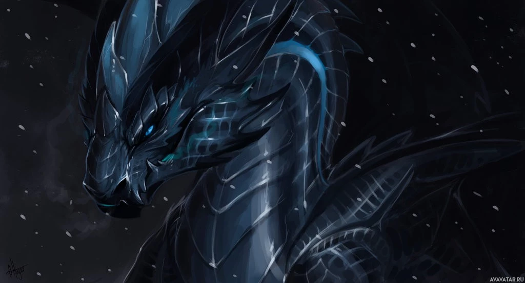 a dark background that suggests a night or dimly lit environment. The image captures the majestic appearance and strength often associated with dragons in