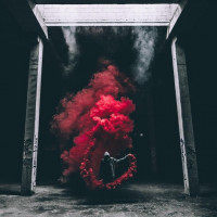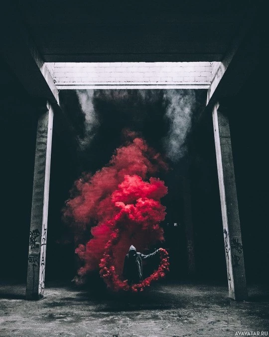 a moody atmosphere. The smoke is colored red and it seems to emanate from