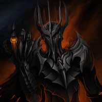 The image features a character from the "Lord of the Rings" universe, known as Sauron, who is often depicted as