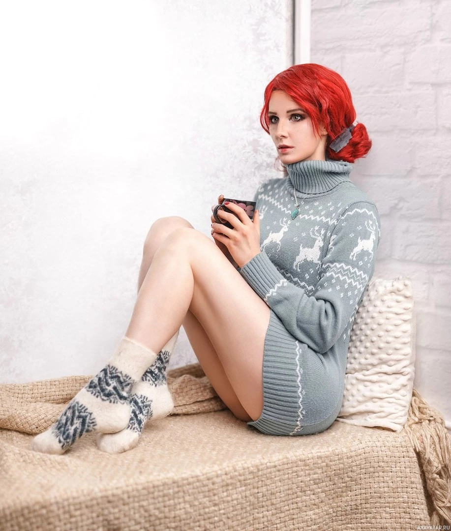 The image features a person dressed in attire that resembles the character Triss Merigold from