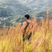 the soft lighting. The person appears to be admiring the view and seems relaxed as they stand amidst