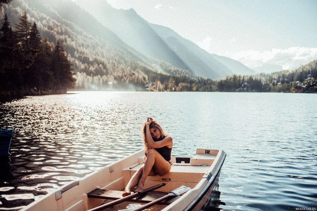 calm waters. The surrounding scenery suggests that the location could be near a lake or other
