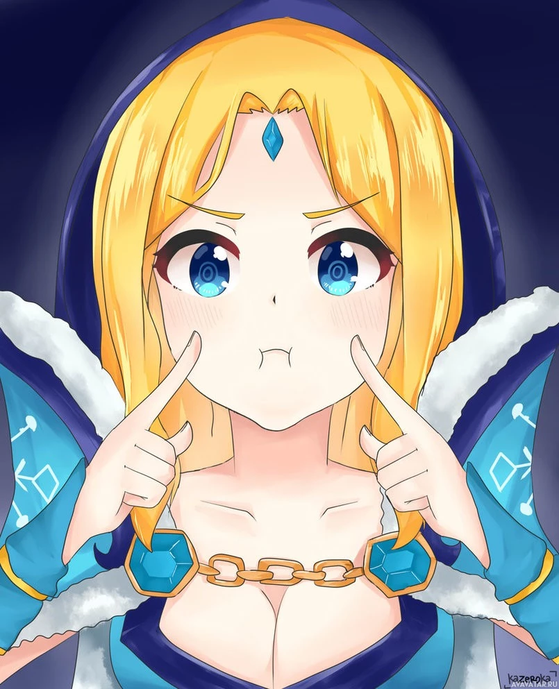 blonde hair stands out against her armor, which features blue accents. The character is designed in the distinctive style of Dota 2 characters with