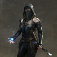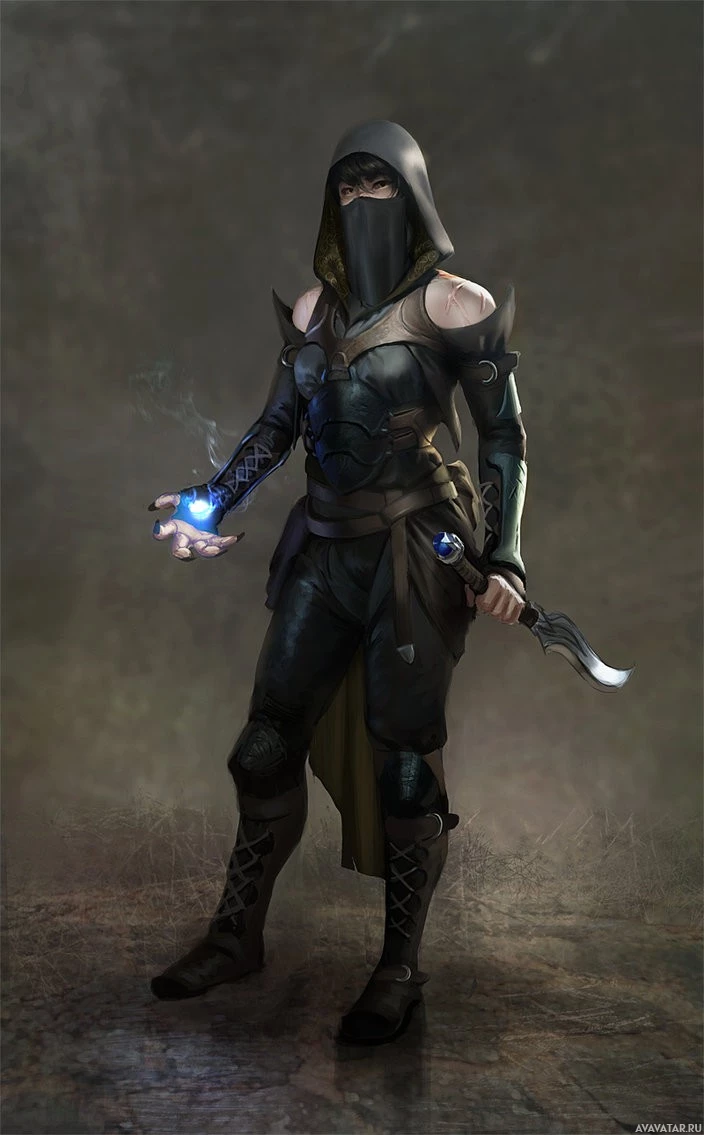 a video game or a piece of fantasy art. The character is wearing