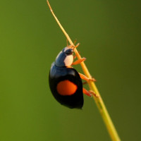 На снимке изображен божья коровка, которая является насекомым. Он расположен на том, что кажется лезвием травы. Ледибаги известны своими яркими цветами и часто связаны с сельскохозяйственной средой, поскольку они помогают контролировать насекомых-вредителей через хищничество.