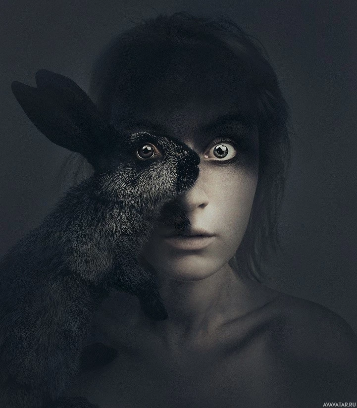 животные | Красивые авы с животным | Animals | Фантастическая сцена с молодой девушкой и зайцем