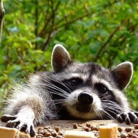 paws on the edge, possibly holding onto something not visible in the frame, and seems to be reaching for the food or looking at it with curiosity. The background is slightly blurred but suggests