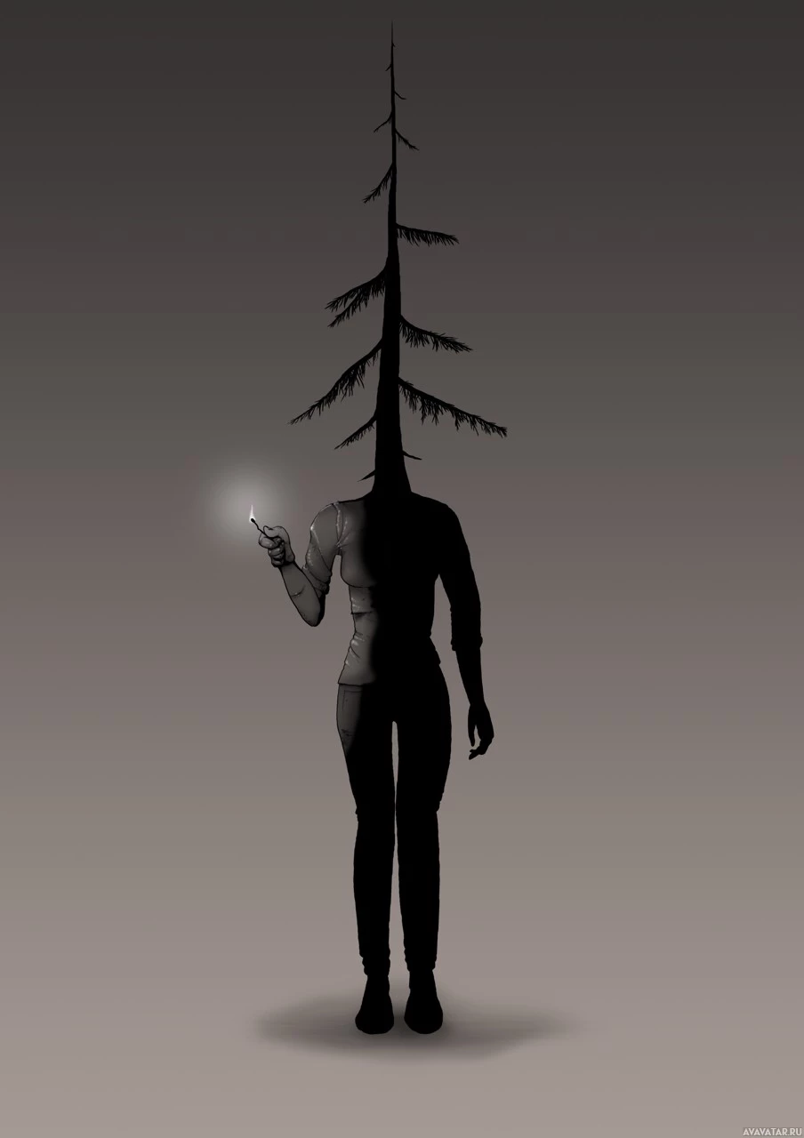 a silhouette of a person standing on what appears to be an uneven surface, possibly representing snow or another flat terrain. The person is holding a matchbox in their right hand and has a small