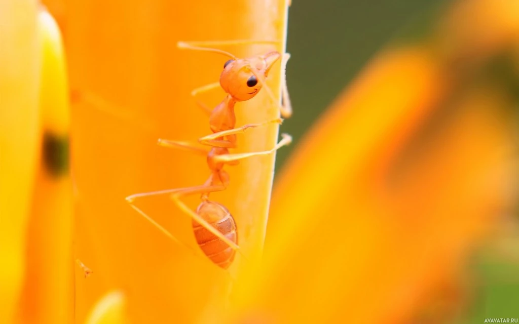 На картинке изображен муравей на растении с желтыми цветами. Муравей является одним из многих видов, которые известны своей трудолюбием и социальным поведением. Муравьи часто встречаются в садах или естественных местах обитания, где они могут кормиться пищей, которая обычно включает в себя мелких насекомых или семена.