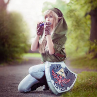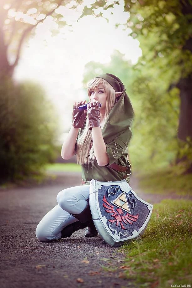 This image features a person dressed in cosplay, portraying the character Link from the game "The