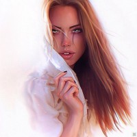 red hair and what appears to be an artistic or digitally altered style. She has