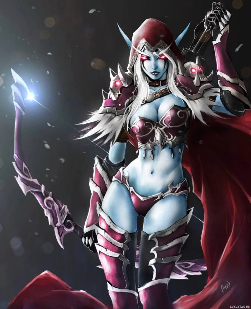 The image features a fantasy-themed character, likely inspired by the Drow archetype from