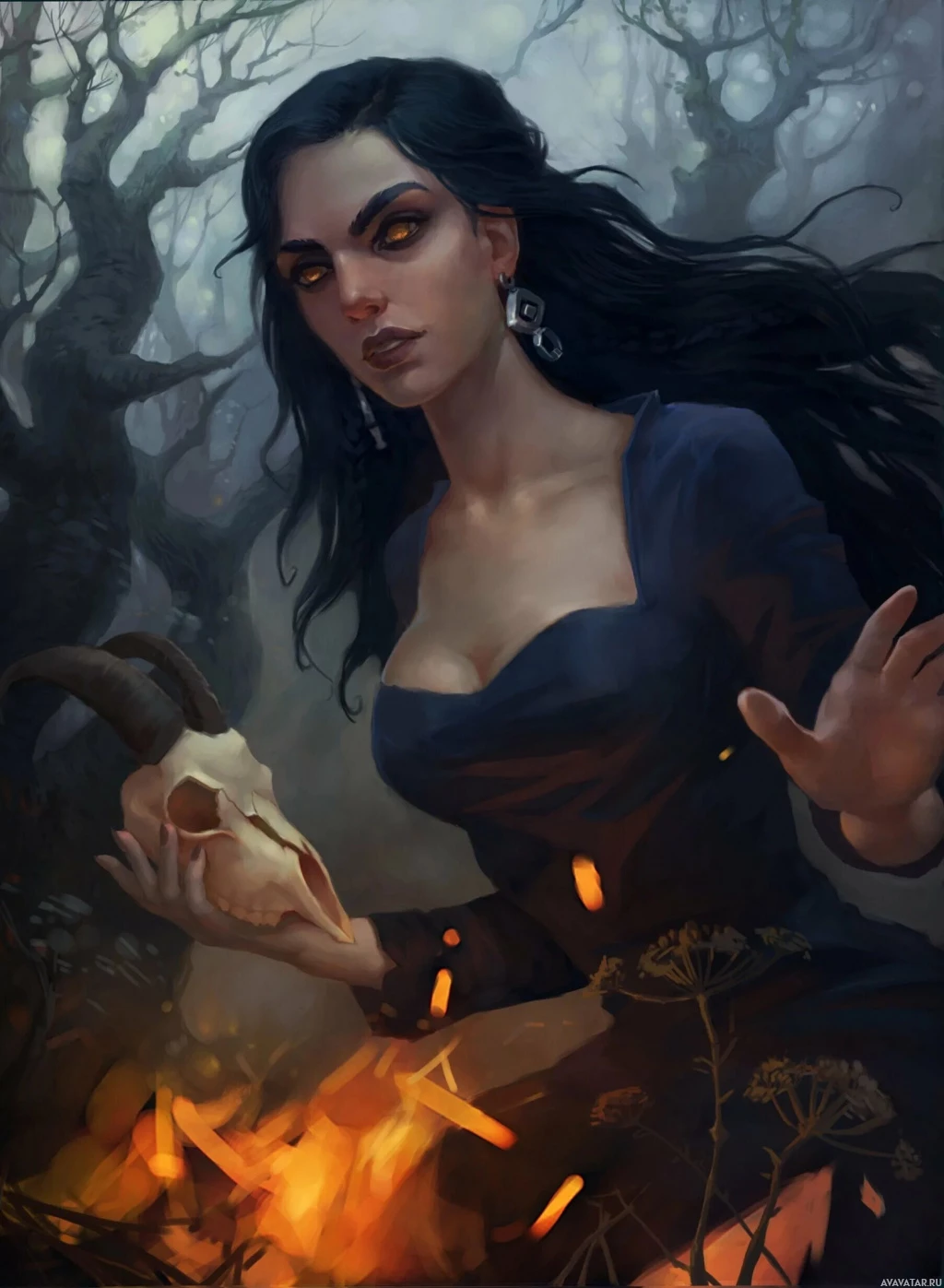 The image shows a fantasy-themed illustration of a woman with