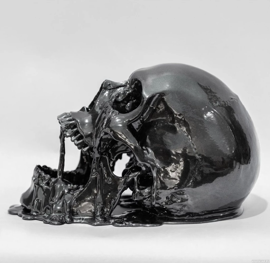 surface texture that mimics the porous appearance of natural bone tissue. This type of skull-like sculpture might be used for decorative purposes,