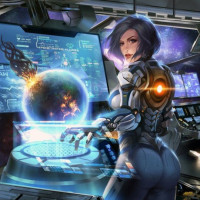 a female character in a science fiction setting. She is wearing