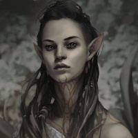 pointed ears and has some sort of mark or tattoo on their face, which adds to the mystical appearance. They are wearing what looks like armor or clothing that suggests they may belong to a warrior caste or have some sort of