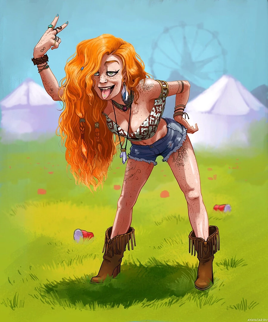 red hair and a punk-like appearance. She is wearing