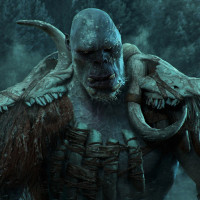 green skin, large muscles, and sometimes wearing armor or carrying weapons. This particular orc has distinctive features such as tusks and a somewhat grotesque facial expression, which contribute to its intimidating and savage look that is commonly associated with