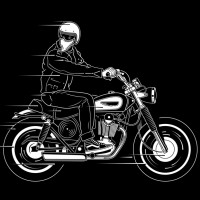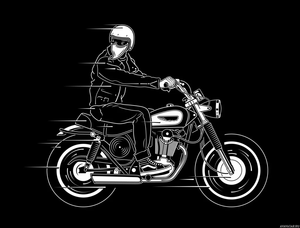 На картинке изображен человек, едущий на мотоцикле, запечатленный в движении с эффектом размытых линий, предполагающих скорость. Мотоцикл находится в фокусе, а гонщик кажется движущимся в быстром темпе.