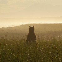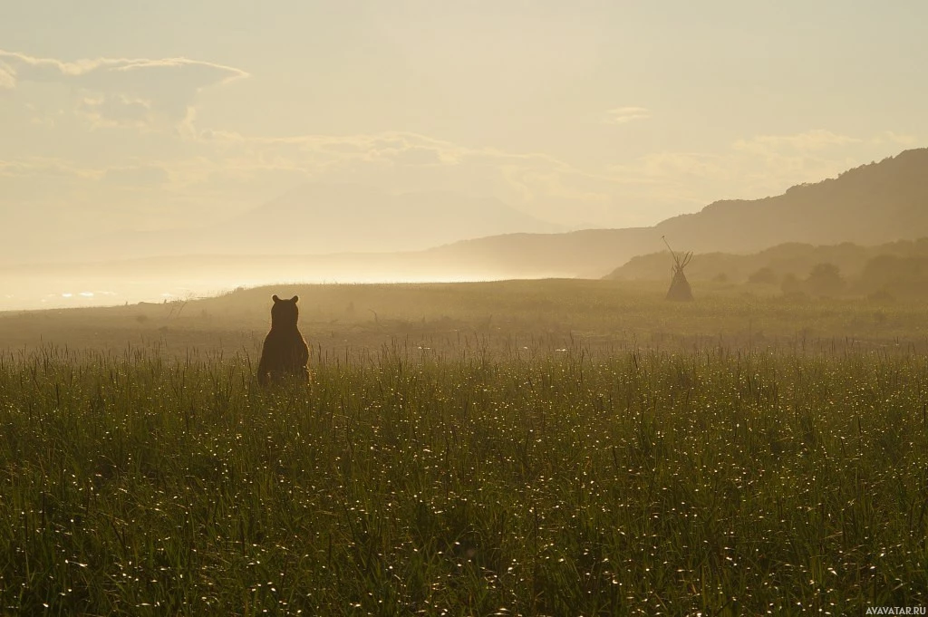 The image shows a silhouette of an animal, which appears to be a bear, standing in
